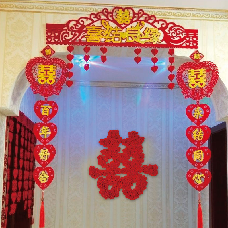 Wedding celebration supplies Creative rose romantic double happiness Wedding happy word stickers Wedding room background decoration Pressure bed doll big happy word