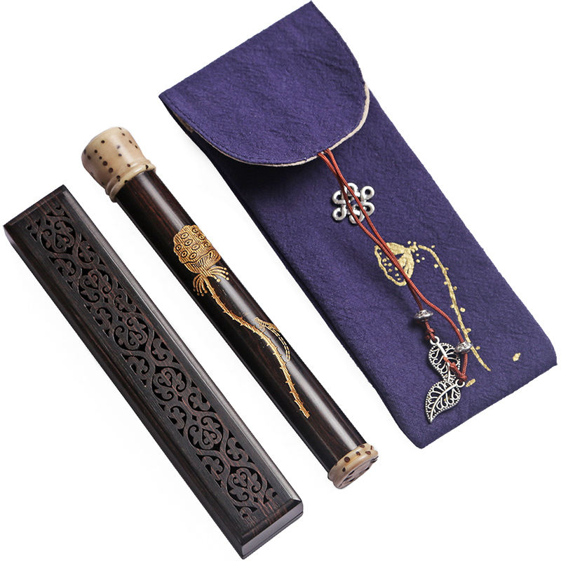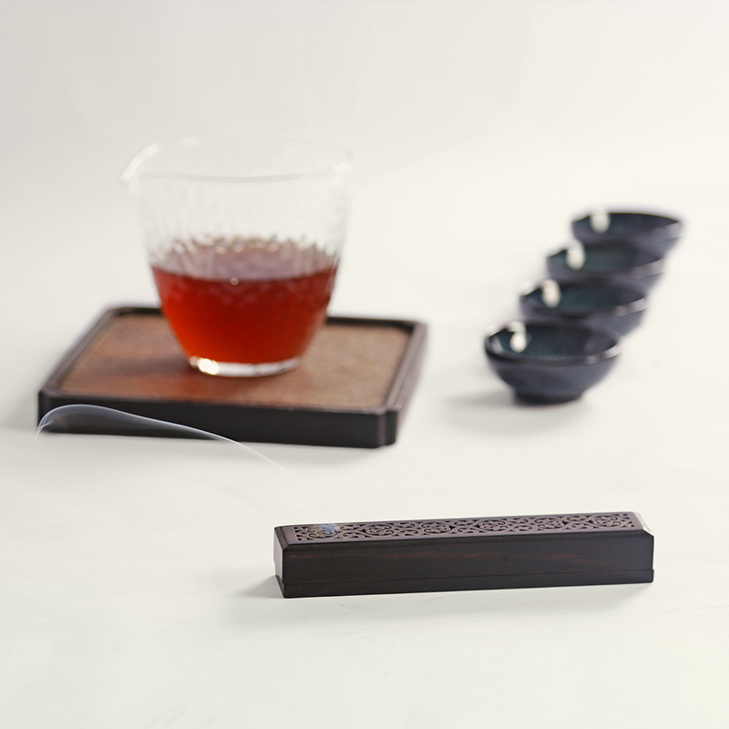 Hollow carved line incense box Lying incense burner Gilt ebony wood incense tube set incense incense portable storage box