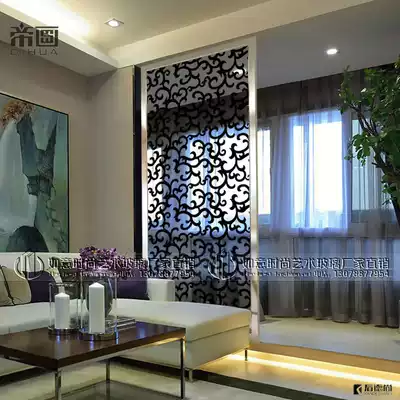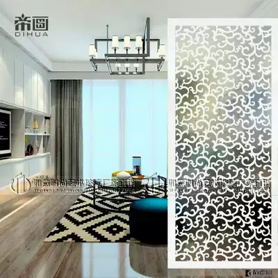 Art glass screen modern simple living room entrance shoe cabinet porch partition carving double-sided transparent background European style