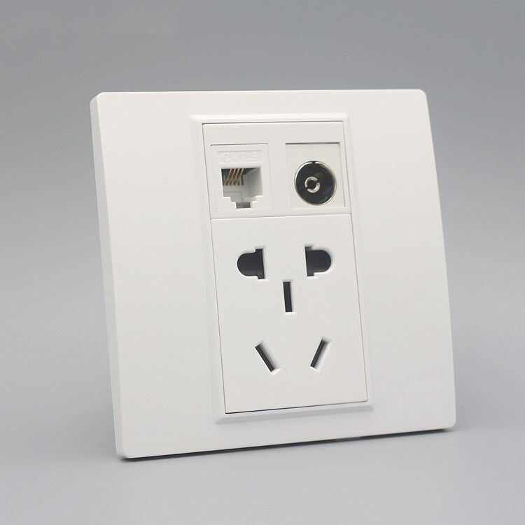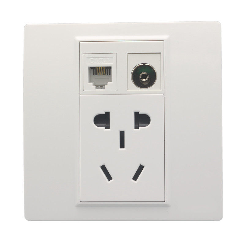 Five-hole power + telephone TV socket