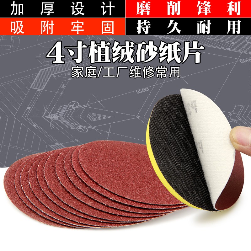 4 Inch Flocking Sandpaper Sheet Corner Mill Metal Polished Sheet Carpentry Plush Polished Sheet Self-Glued Back Suede Sandpaper Mill Sheet