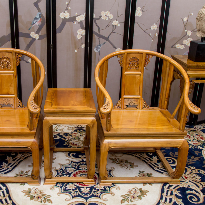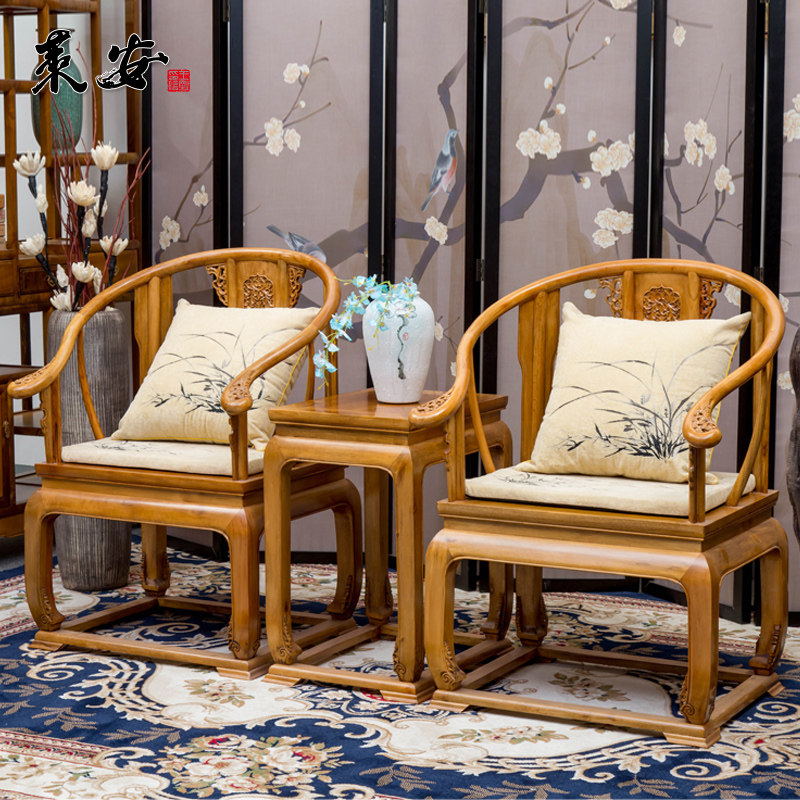 Golden Silk Nan Circle Chair Imperial Palace Chair Throne Red Wood Furniture Chinese Style Official Hat Chair Taiba Chair Three Sets Solid Wood Tea Chairs-Taobao