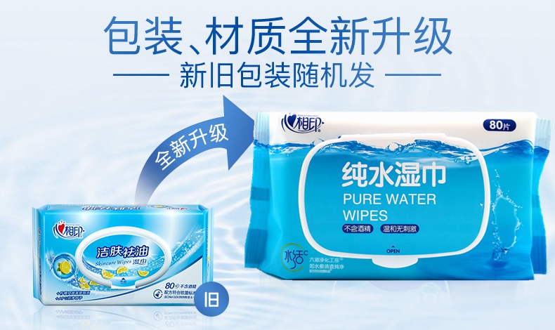 Heart phase print wet towels XCB080 Skin Pure Water Wet Wipes extract wet tissue with lid 80 pieces 3-pack set of 240 pieces