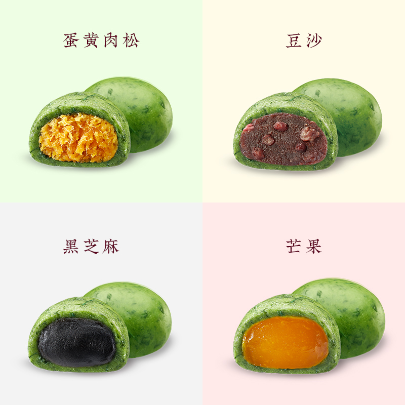 Wufang Zhai Qingtuan Glutinous Rice Fin Egg Yolk Meat Pine Dim Sum Net Red Mochi Cake Snack Snow Beauty Lady Wormwood Green Dumplings