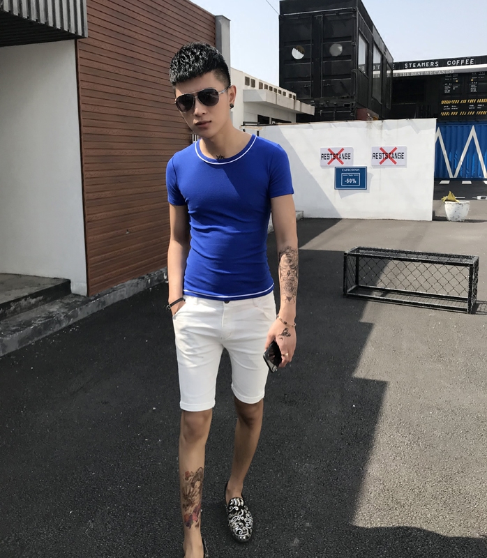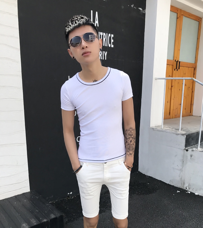 Boys short-sleeved t-shirt men's tight Korean version half-sleeved youth Slim trendy men's T-shirt summer cotton inner wear
