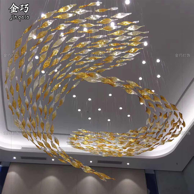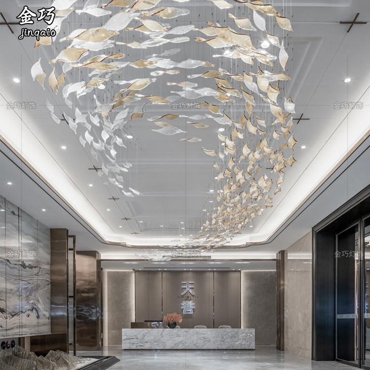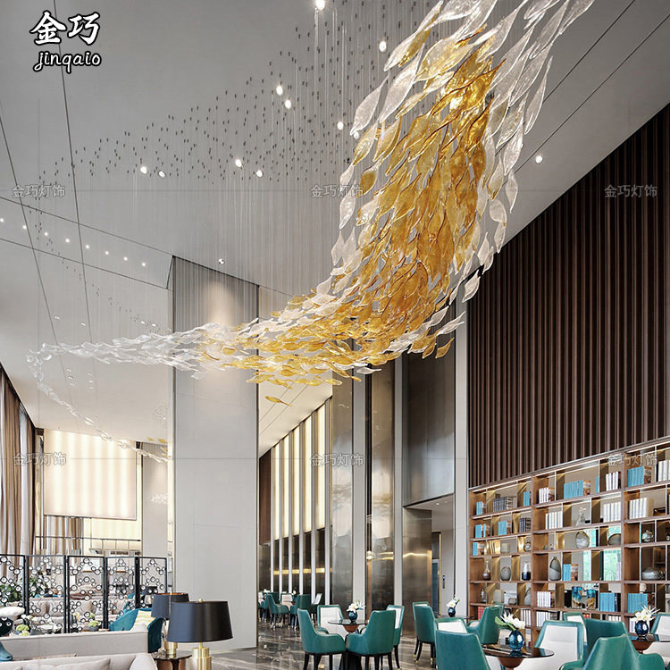 Soft decoration art Sky hanging creative top hanging glass leaves Hotel atrium shopping mall ceiling decoration