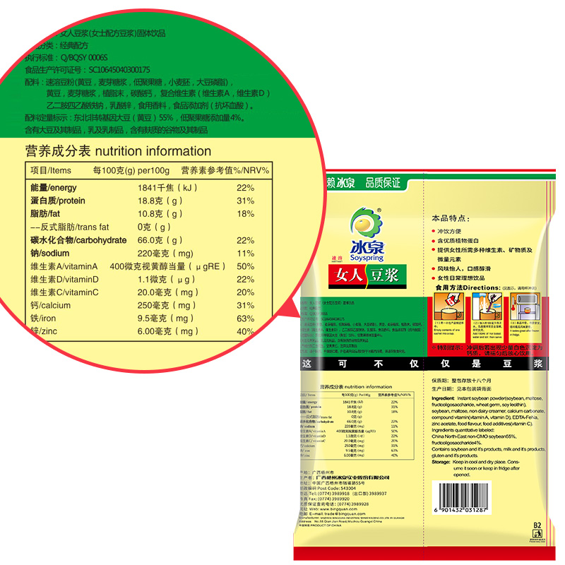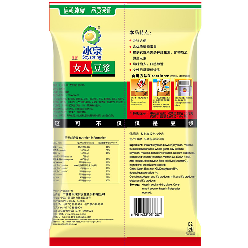 Ice Springs Classic Woman Soy Milk Powder 400g (13 packets) Non-genetically modified Bean Powder Nutritious Breakfast food