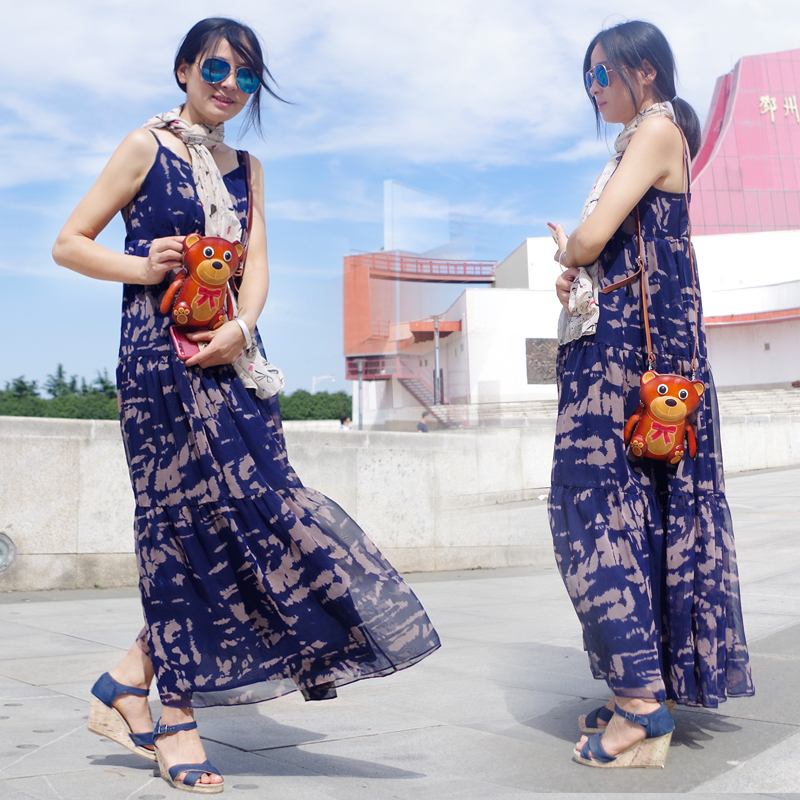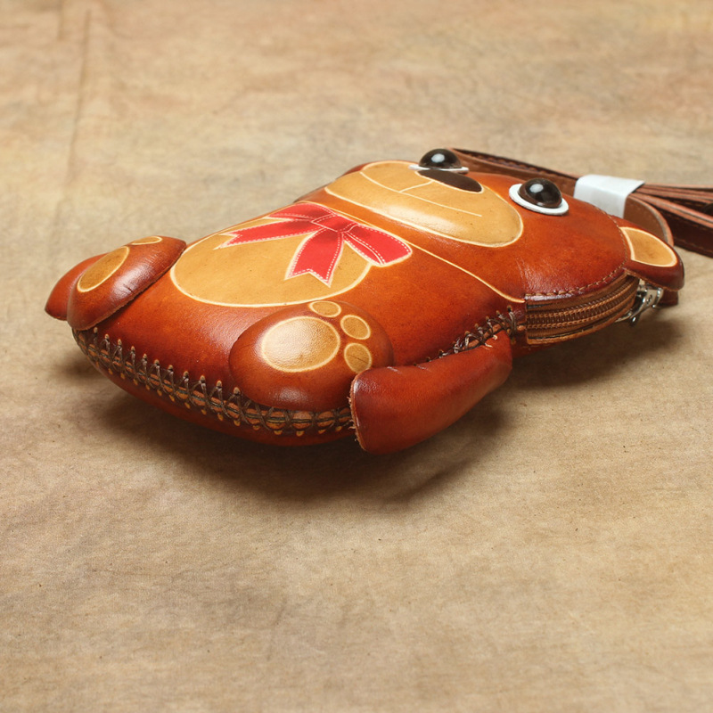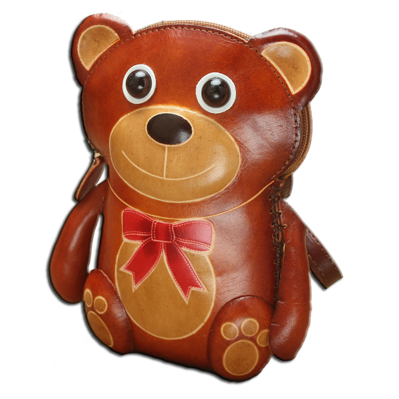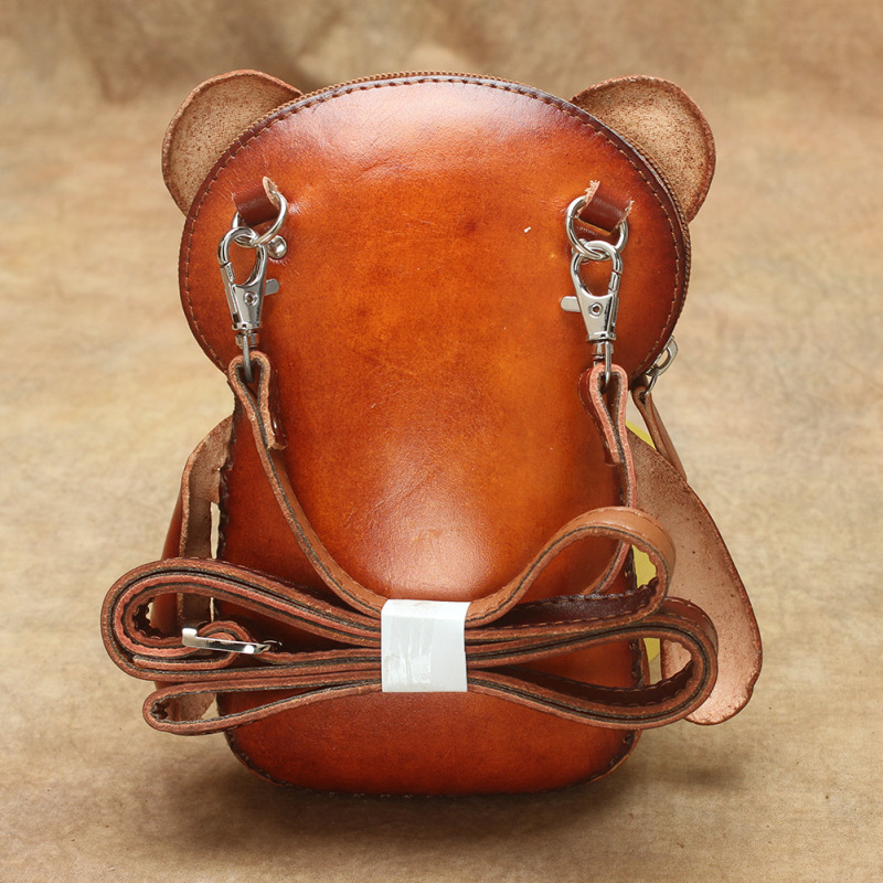 Genuine leather handmade personalized small shoulder bag simple and cute shoulder bag female bear cartoon big screen mobile phone bag cowhide backpack