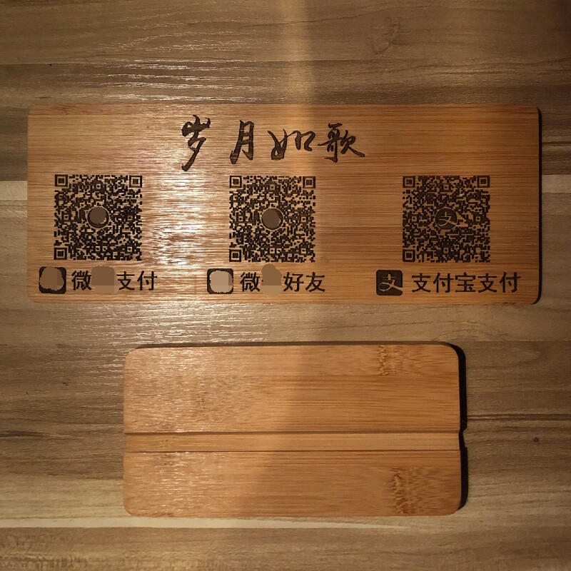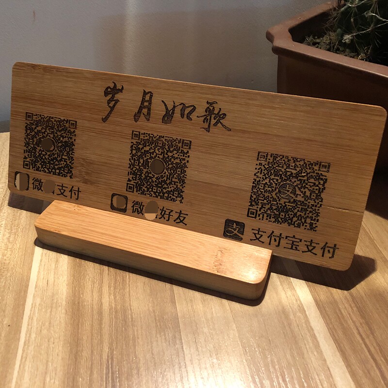 Creative Solid Wood Engraving Sweep Code Payment Card 2-Code Alipay WeChat Pay ID Payment Mark Hanging Up and Customized Pendulum Table