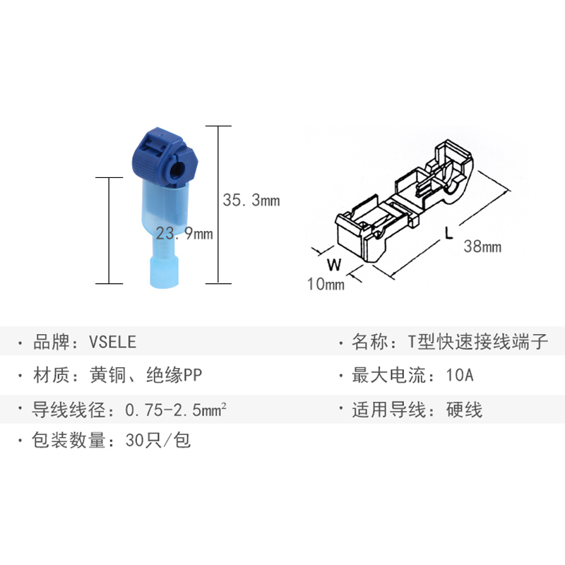 Wire-free terminal crimp wire connector Cold-pressed T-terminal Household terminal T-type sub-and-female terminal head