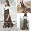 2020 summer Korean version suspender floral Chiffon dress women loose ins super fire medium and long version fishtail skirt two-piece set