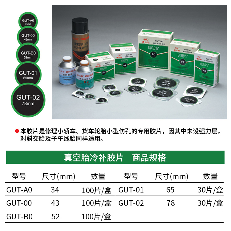 Tunda couplets vacuum tire cold fill negatives Tire Tire Glue GUT-01 02 A0 B0 00