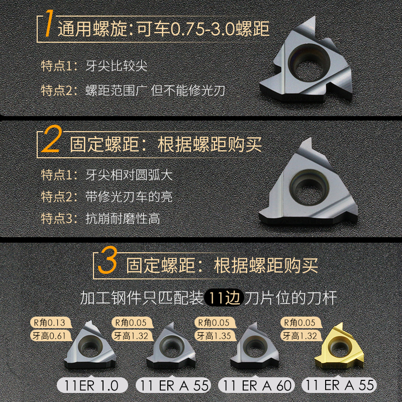 Numerical control blade steel piece with external thread blade knife grain 11 16ER A AG55 60 14W tooth knife cutter