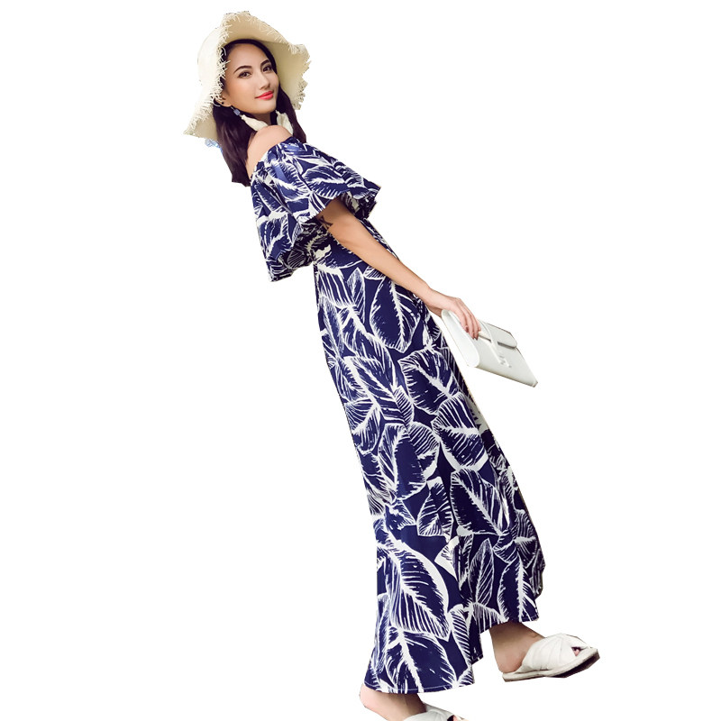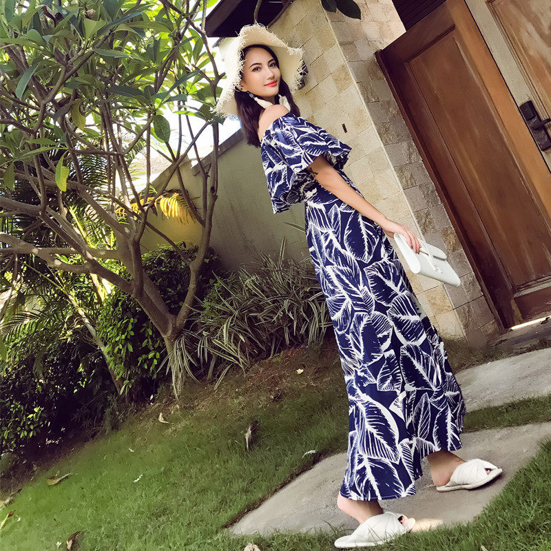 Beach long dress Women in summer 2019 new exposed shoulders with long version of slim dresses Exposed Shoulder Tropes of a Shoulder Dress