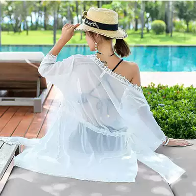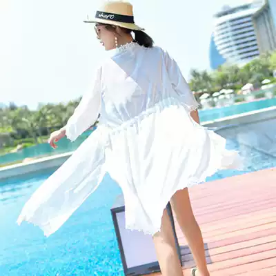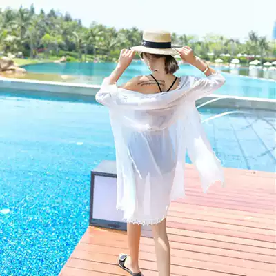 Swimsuit women's blouse single scarf sexy medium and long version of sunscreen chiffon transparent swimsuit women's coat beach blouse