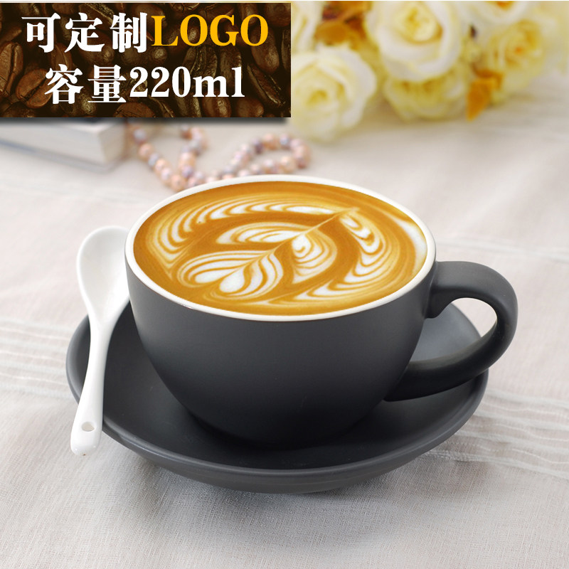 European-style coffee cup and saucer set custom creative pull flower cappuccino cup multi-color with spoon ceramic frosted latte cup