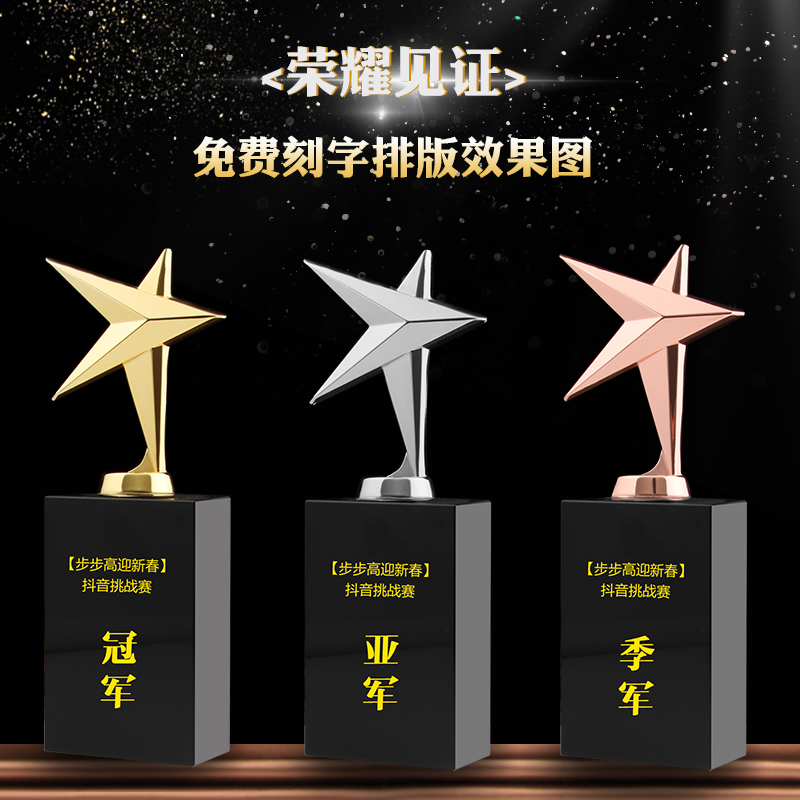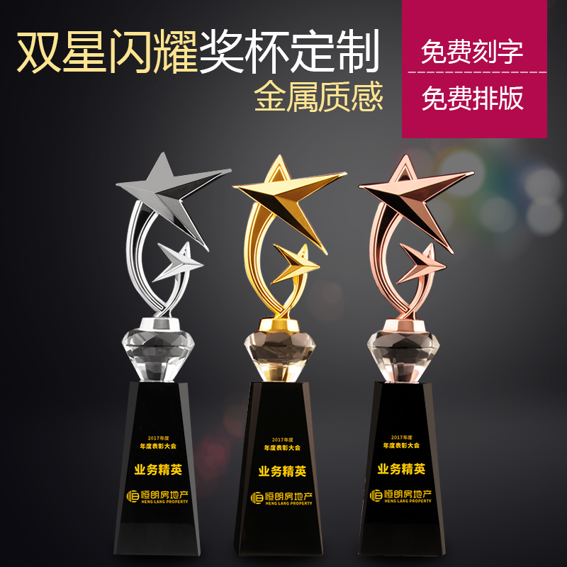 Metal Pentagon Trophy Customized Crystal Trophy Customized Excellent Employee Enterprise Annual Memorial Awards Memorial Entry