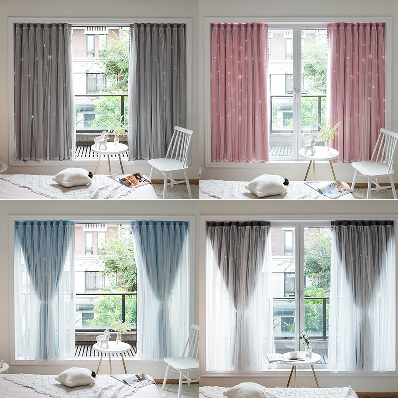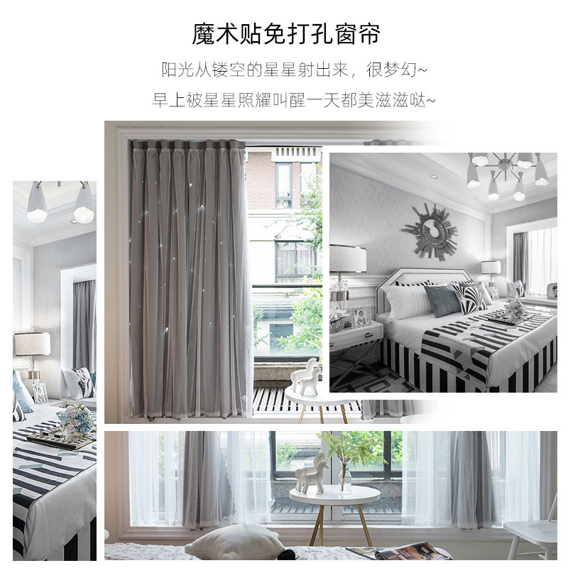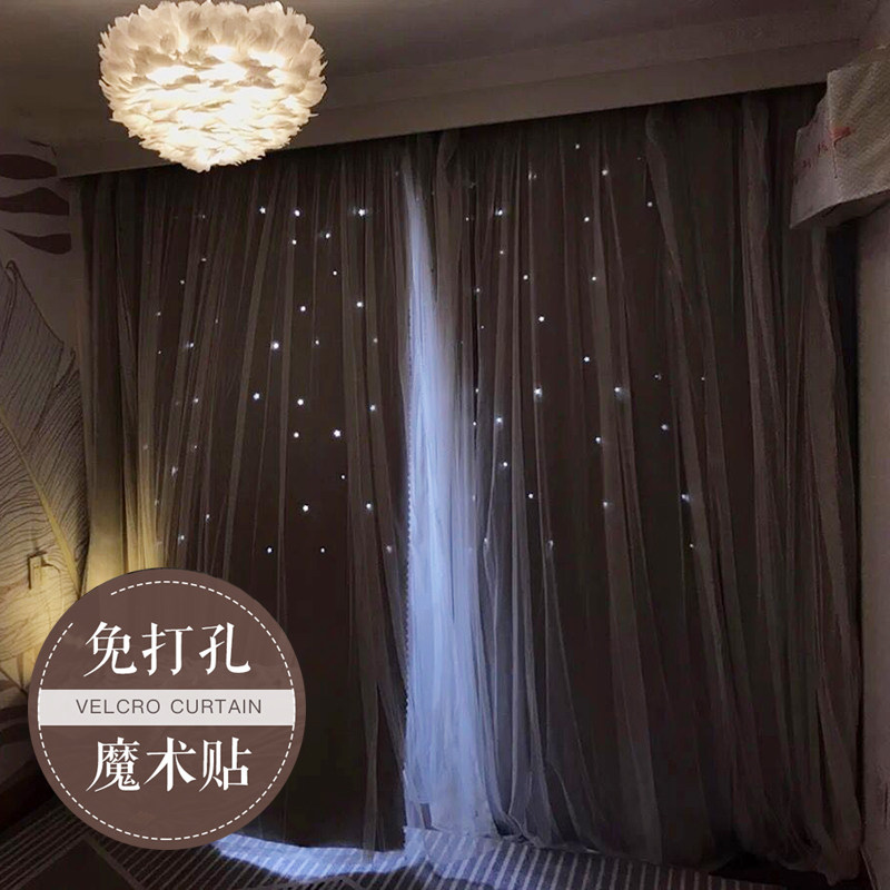 Net Red Perforated Magic Adhesive Windows Cloths Stars Full Shade Princess Wind Double curtain finished installation