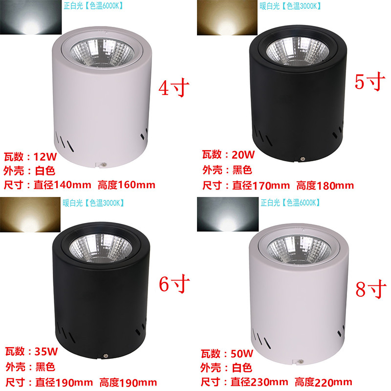 12W white shell (positive white light) 12W white shell (warm white light) 12W black shell (positive white light) 12W black shell (warm white light) 18W white shell (positive white light) 18W white shell (warm white light)
