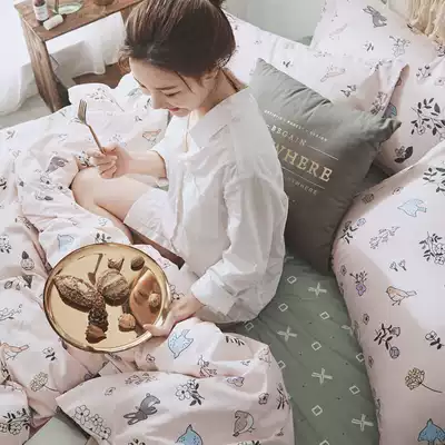American pastoral cotton four-piece hipster floral cotton quilt cover sheets bed hats student dormitory bedding