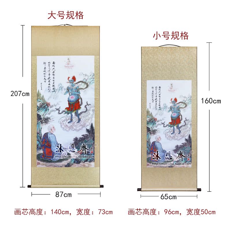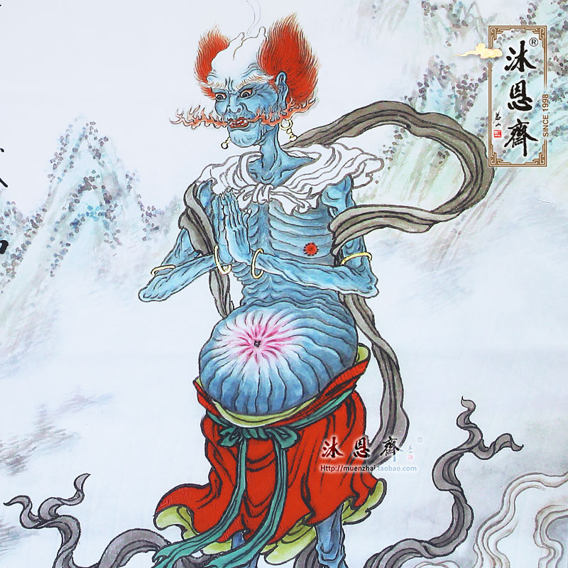 Customize Facial Burnout Grand portrait Grand Master Ghost Wang Pudun Silk Scroll Hung Painting And Surface Painting Decoration Painting
