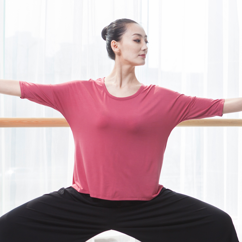 Dance suit Female adult practice suit Three-point sleeve basic training suit Loose modal teacher short-sleeved top dance suit