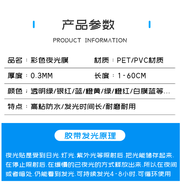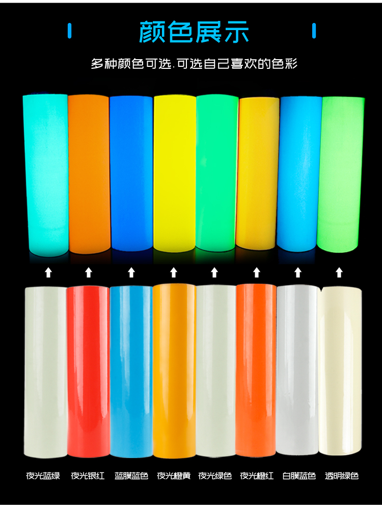 Transparent luminous sticker film Green light Blue green light multi-color multi-width specifications Engraving and printing light storage film Fire film