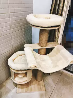 Cat climbing frame Environmental protection solid wood cat jumping platform Cat tree export cat toy cat villa Bold cat scratching post Removable and washable cat nest