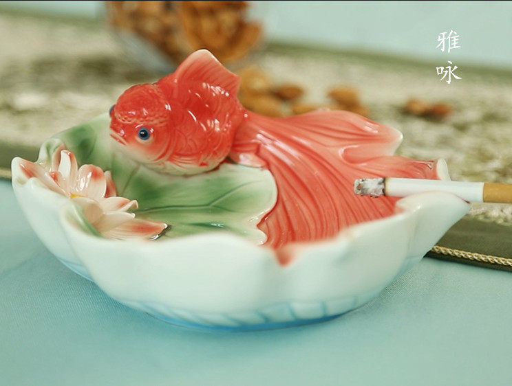 Eurostyle Living Room Goldfish Lotus Large Size Ceramic Ashtrays Home Personality Office Multifunction Candy Pan Creativity-Taobao