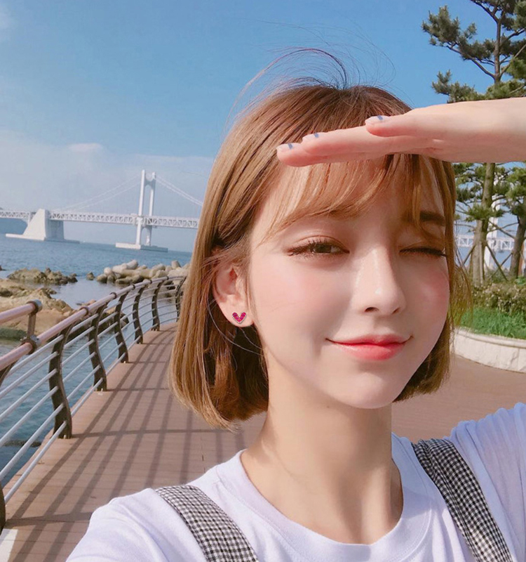 s925 sterling silver love ear pin female small red heart earrings Korean small fresh and cold wind earrings student birthday gift