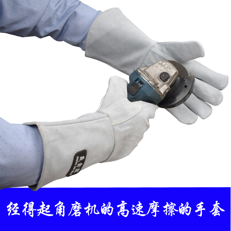 Welding gloves cowhide high temperature resistant seamless long version anti-scalding anti-cutting wear-resistant welder welding cotton plus velvet soft