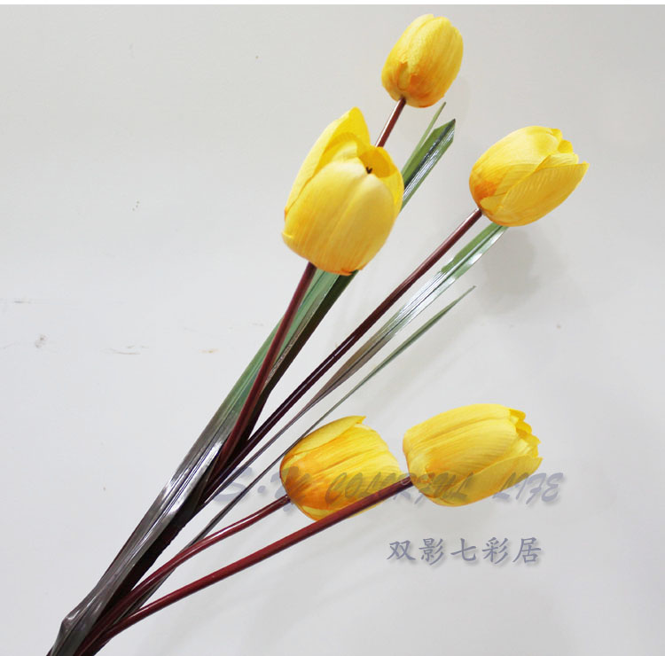 Simulation multi-head tulip vase decoration long branch tulip silk flower fake flower decoration flower