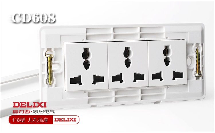 DeLixi 118 Type of mid-switch socket Nine-hole panel CD608 Nine-plug multifunction 10A Nine-eye 9 Dark fit inserts