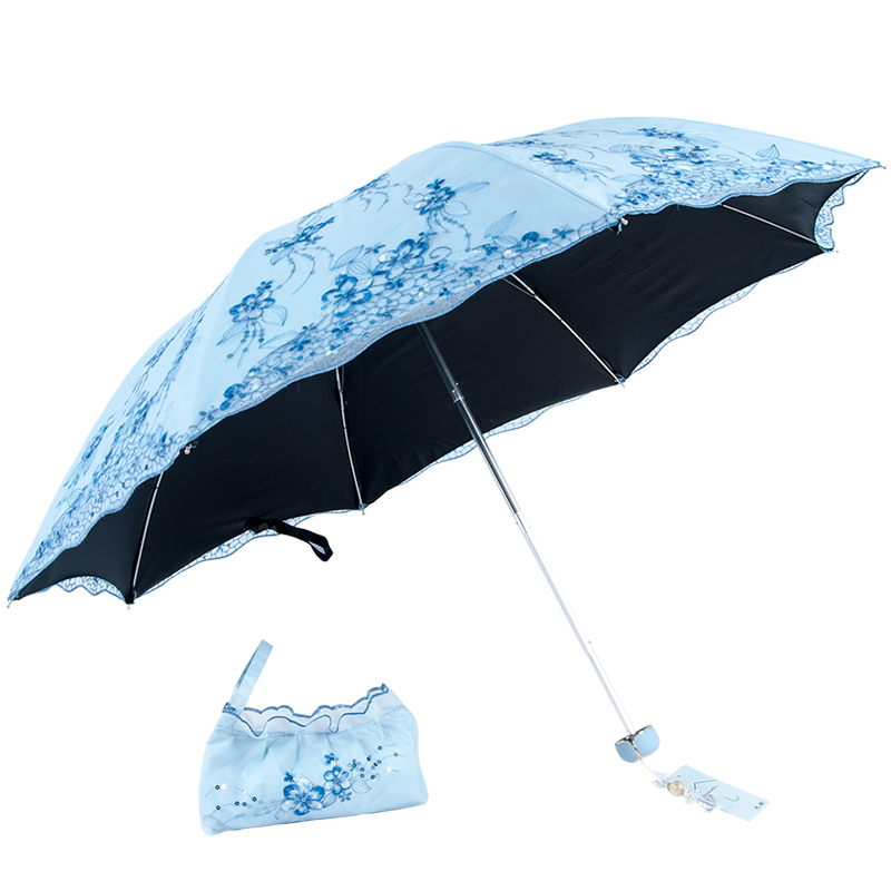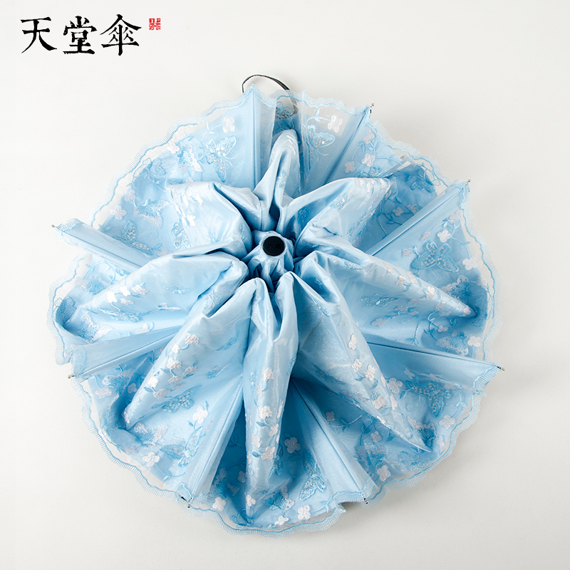 Blue purple sky blue pink#Double-layer umbrella, outer layer of lace embroidery, inner layer of vinyl sunscreen #pink light green black gold light green beige