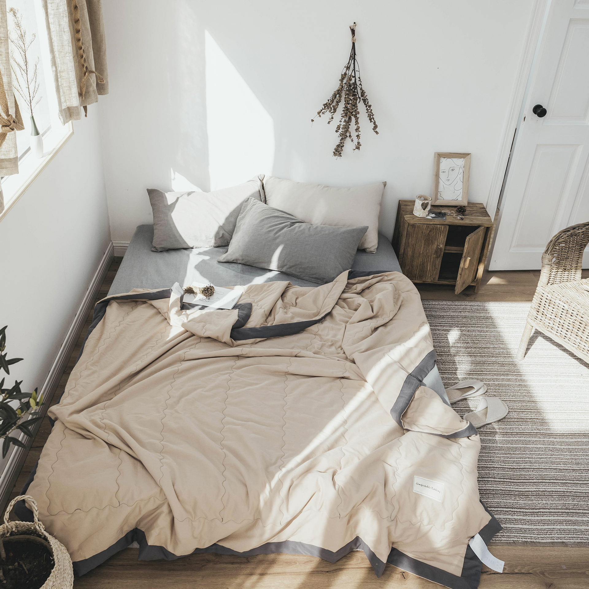 ins Nordic minimalist summer pure colour summer quilted by pure cotton washed cotton air conditioning by single full cotton double by summer cool quilt-Taobao