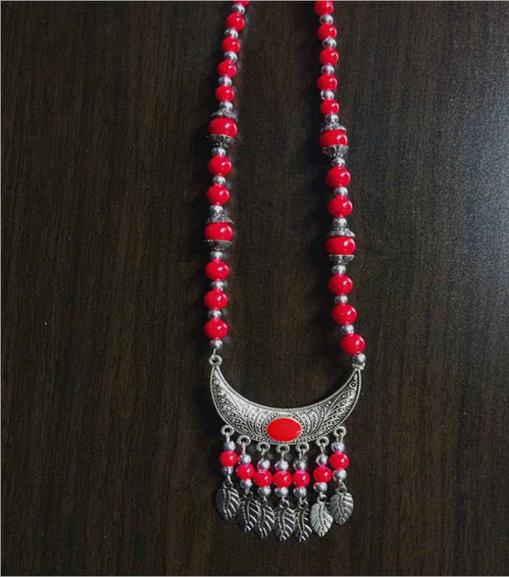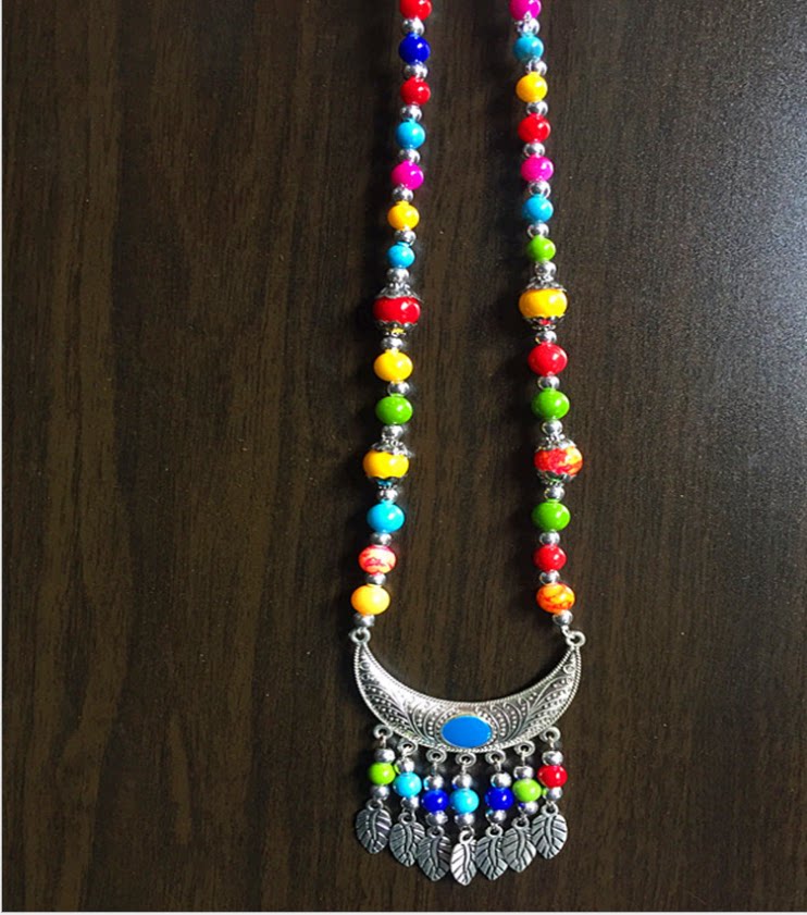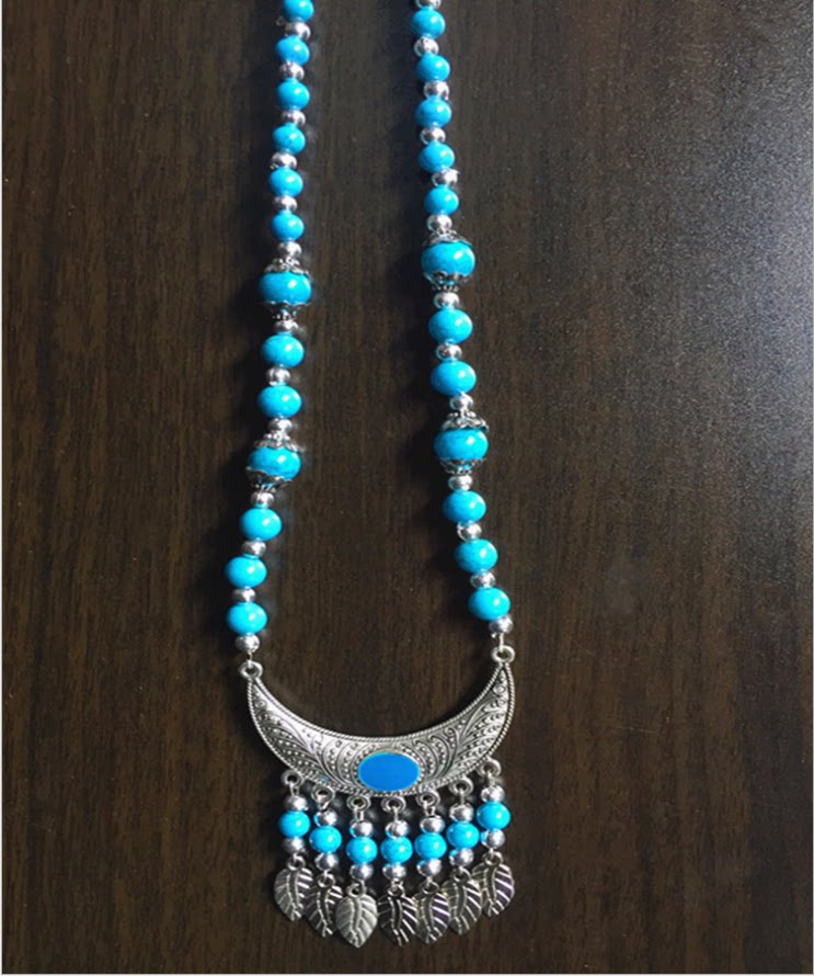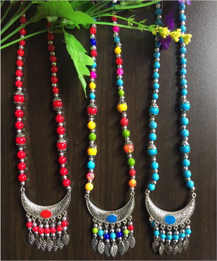 Ethnic minority pure handmade Miao silver necklace Female color beaded necklace Clavicle chain stall hot sale