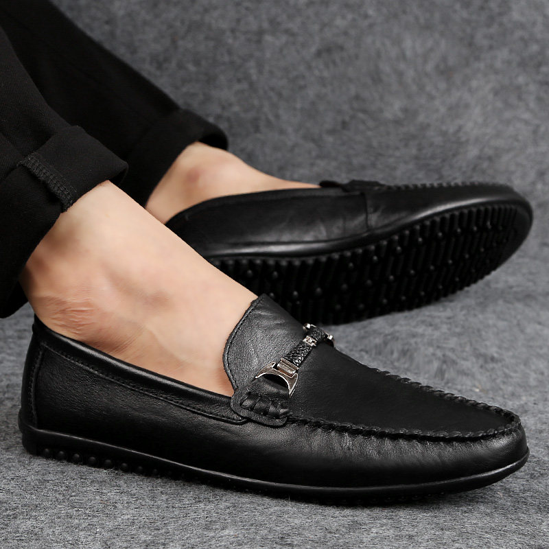 Spring breathable loafers men's leather set feet soft bottom soft surface leather beanie shoes youth Korean casual men's leather shoes