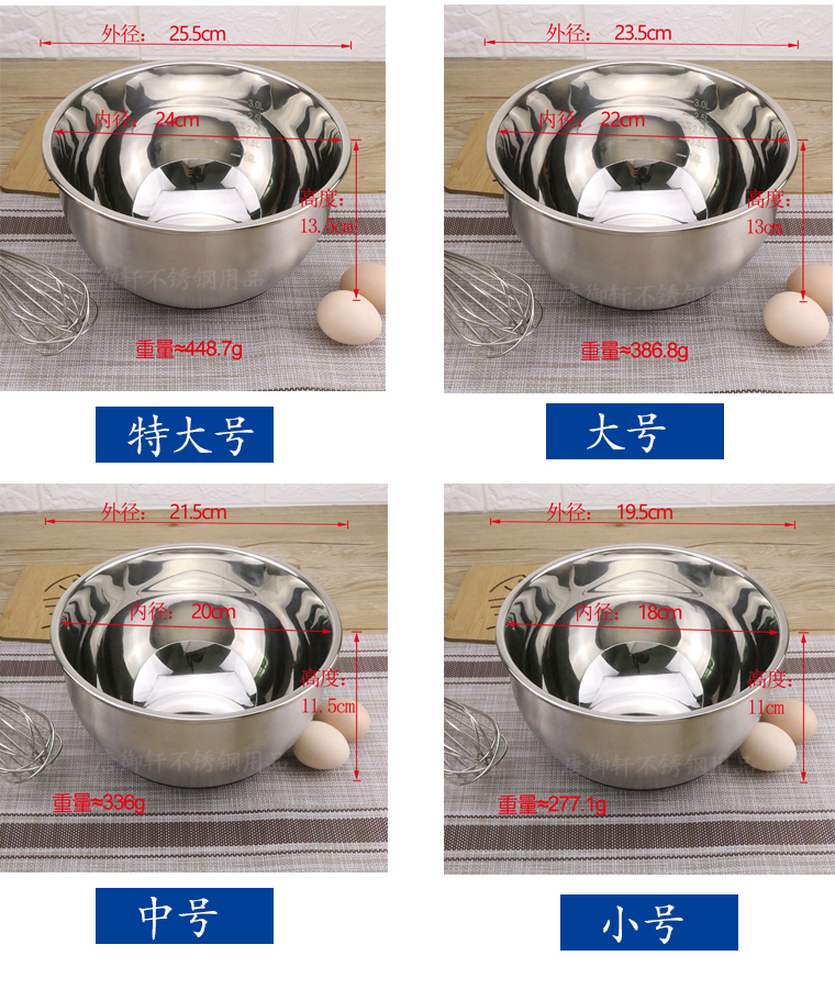 Stainless steel deepening round non-slip Egg Basin Baking Home Cake Stirring Miller Cream and Salad Kitchen