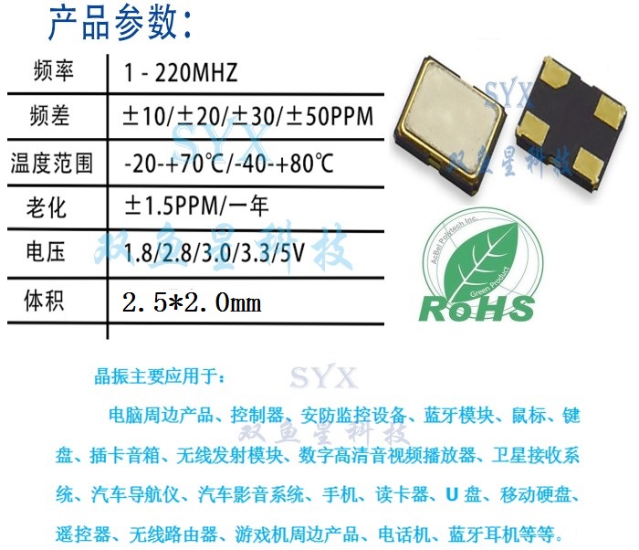 Patch active crystal vibration 2520 12M 13M 16M 20M 22M 24M 26M 27MHZ 4 feet