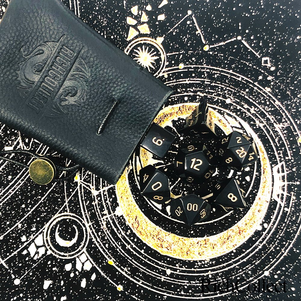 7 dice set with dragon logo True cowhide bag