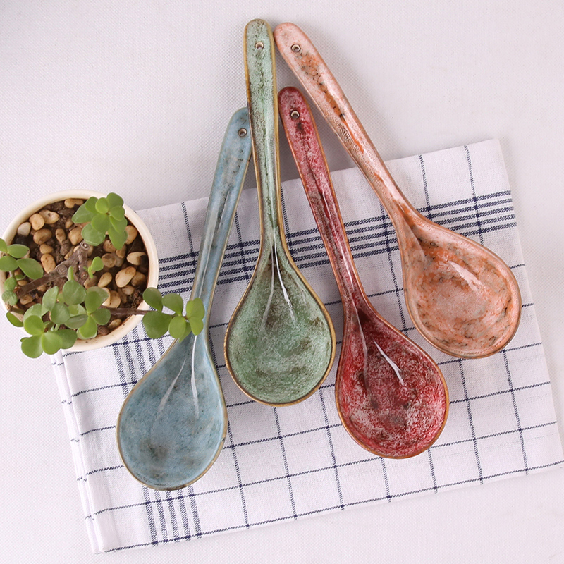 Yuquan new product Korean hand-painted stoneware large spoon retro creative personality spoon long handle spoon single