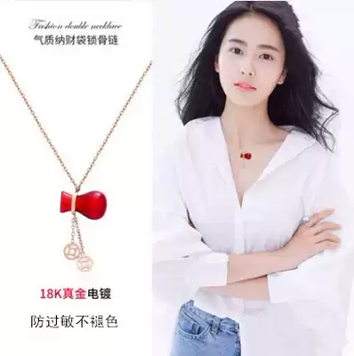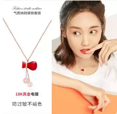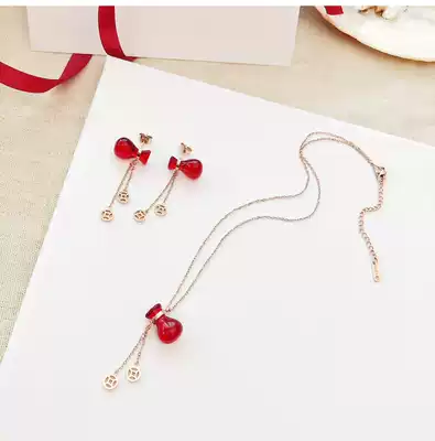 South Korea's original year jewelry red money bag temperament Joker tide titanium steel gourd necklace earrings female pendant choker