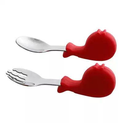 Little baby learns to eat training spoon short handle spoon fork Silicone baby baby children's tableware set Non-food spoon