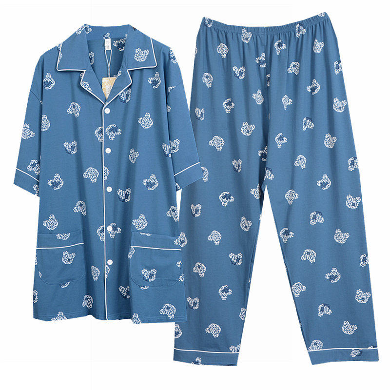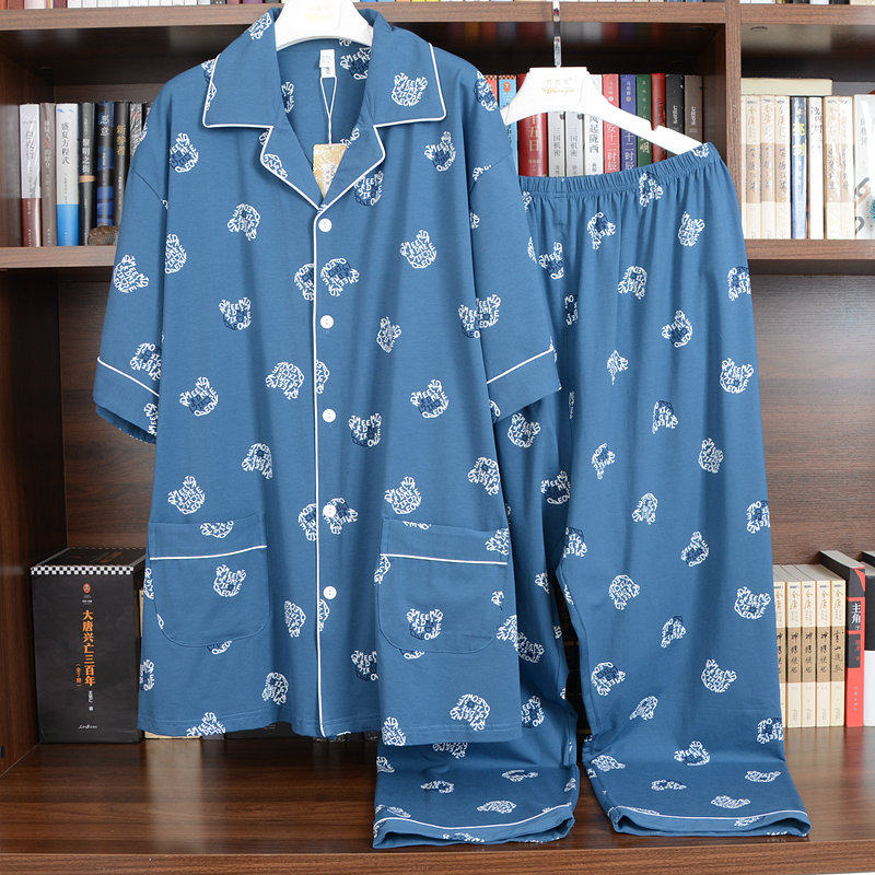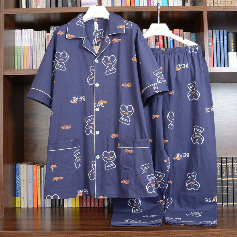 High - end Xiao fat man thin 200 pounds weight and increased pure cotton short - sleeved trousers pajamas home clothes 6XL