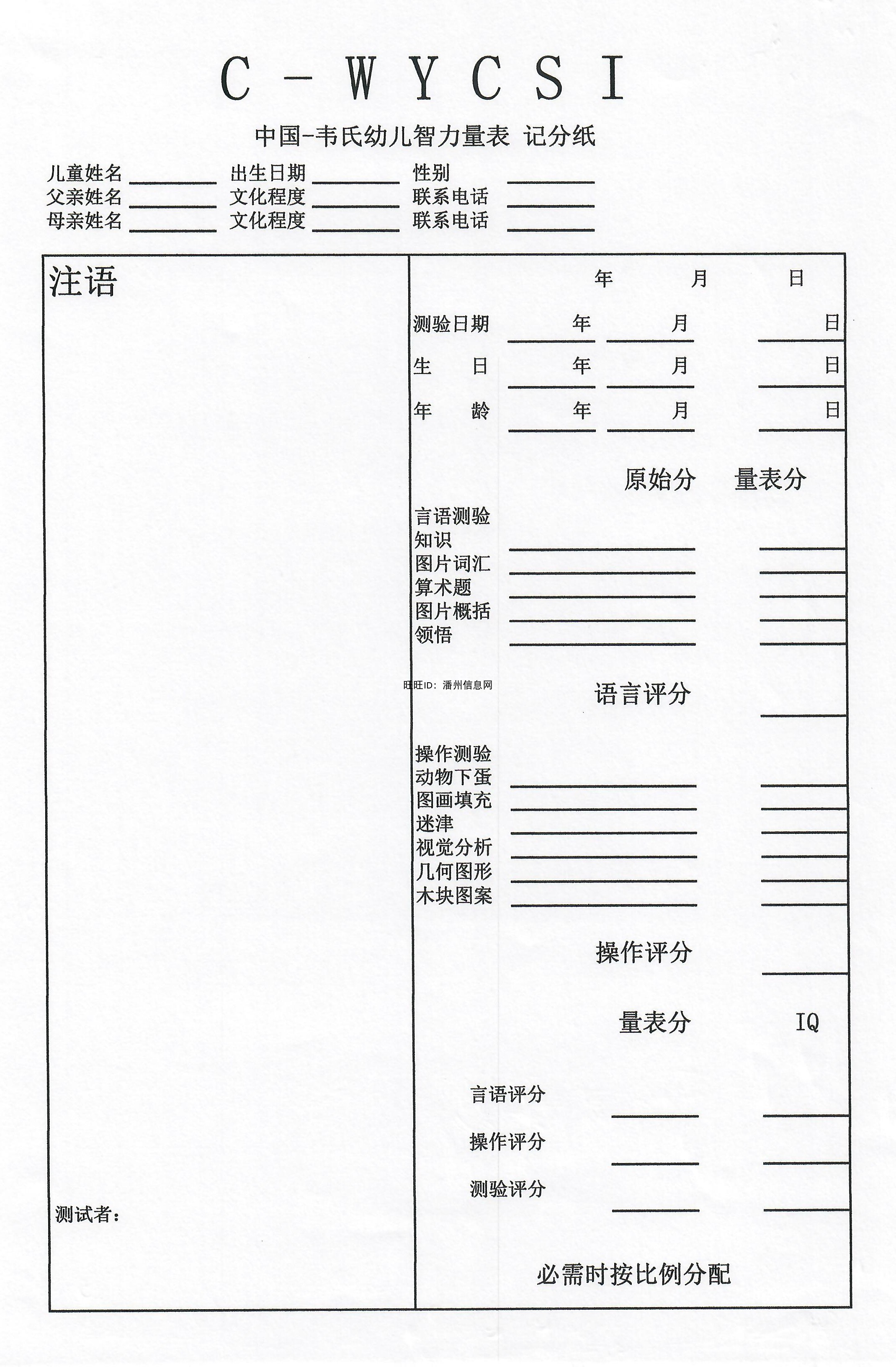 China revised the full set of test toolboxes for Webster Young Children's Intelligence Scale (C-WYCSI) (4-6 years old)