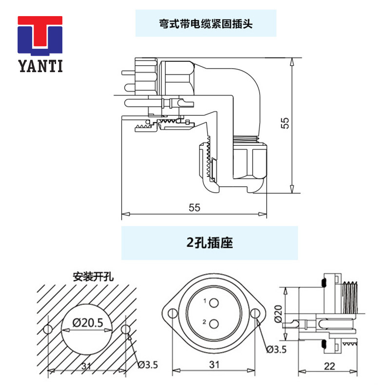Waterproof aviation plug socket SD20-2 core 3 core 4 core 5 core 7 core 9 core 12 core connector M20 elbow diamond