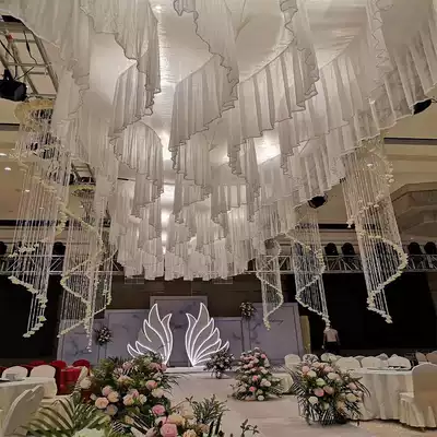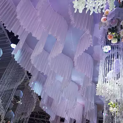 Wedding props table wedding ceiling yarn ice curtain wave wedding hall hanging ceiling decoration