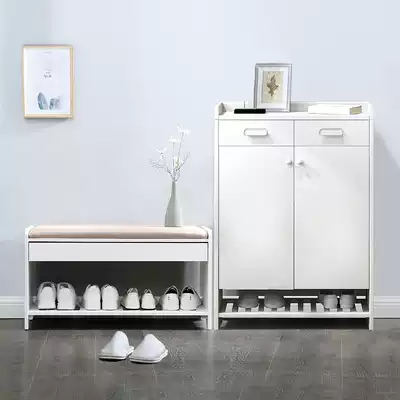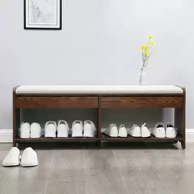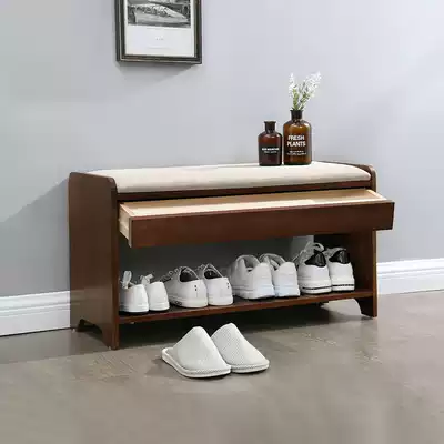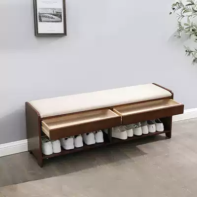 Door solid wood shoe change stool can sit on shoe rack simple storage stool household Nordic long stool storage stool with drawer