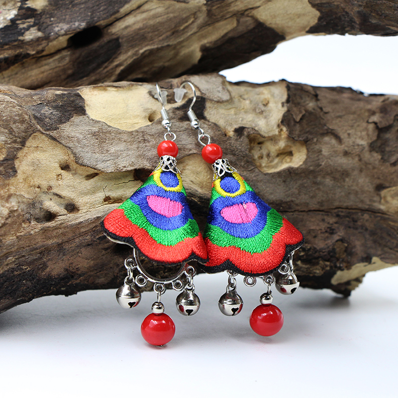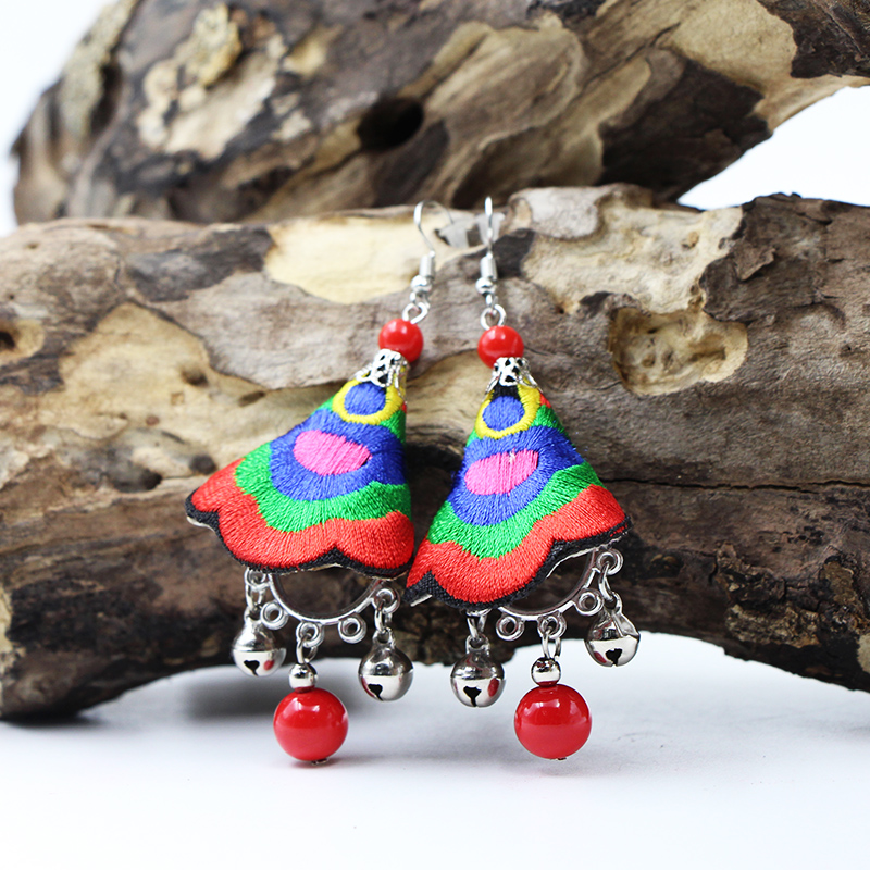 National Wind Embroidered Earrings Short earrings Ears Pendant Retro Square Dance Dance Stage Accessories Accessories REAL ATTRACTIONS HOT SELL