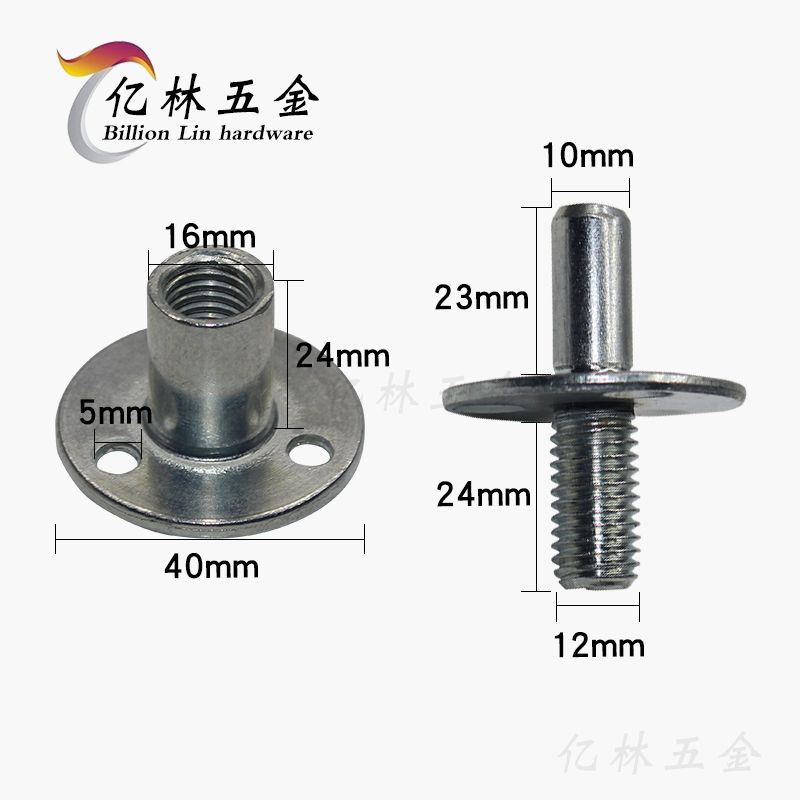 M12 bed column connecting piece screw butt iron nut three-hole splint nut pair of lock nut furniture 5 gold accessories